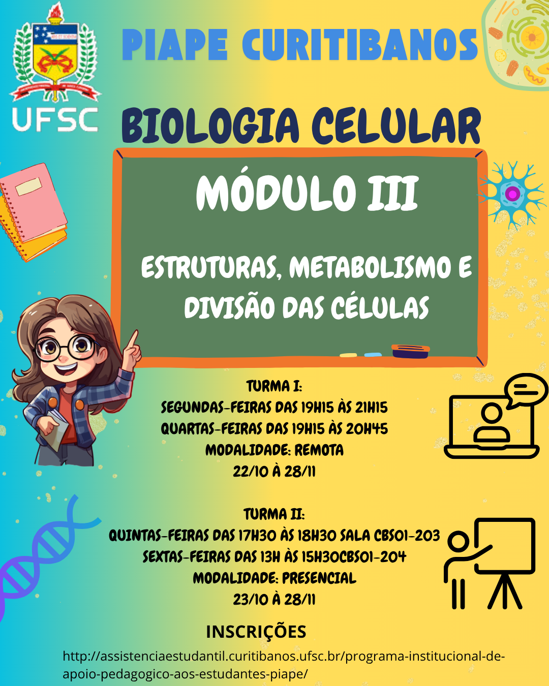 Inscrições: https://inscricoes.ufsc.br/piape-cbs-bioquimica-minicurso-rev